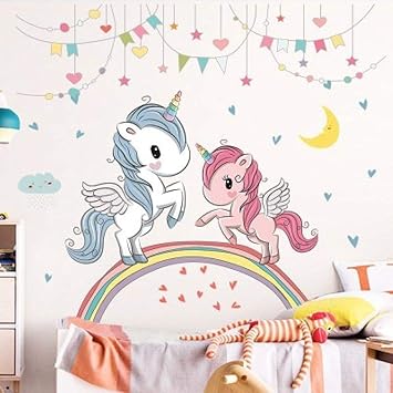 Amazon Com 3d Wall Sticker Girl Bedroom Cute Cartoon Unicorn